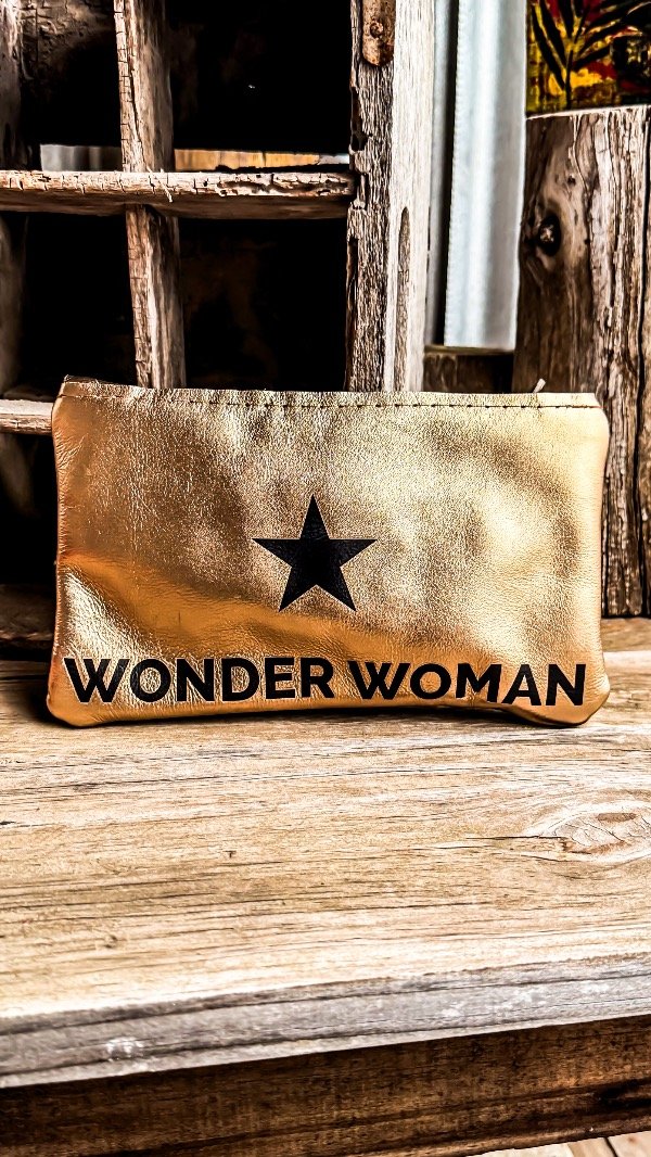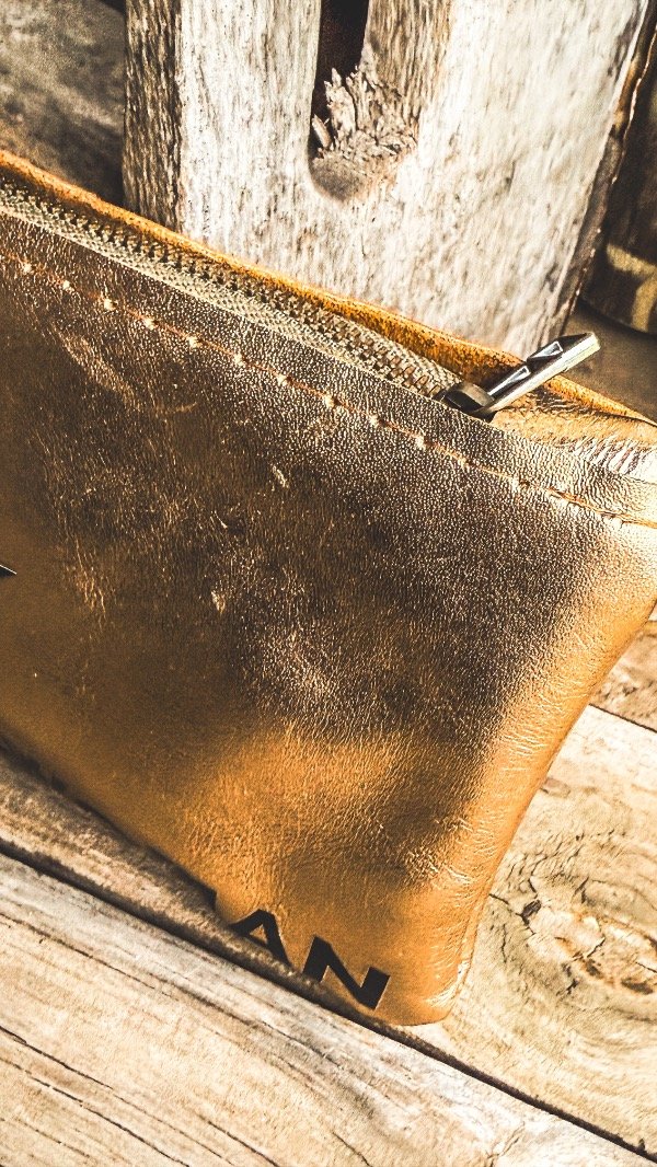 Sobre de cuero, color dorado.